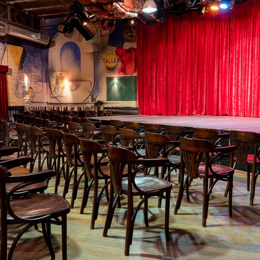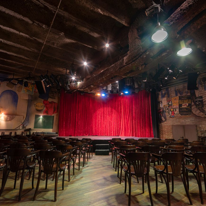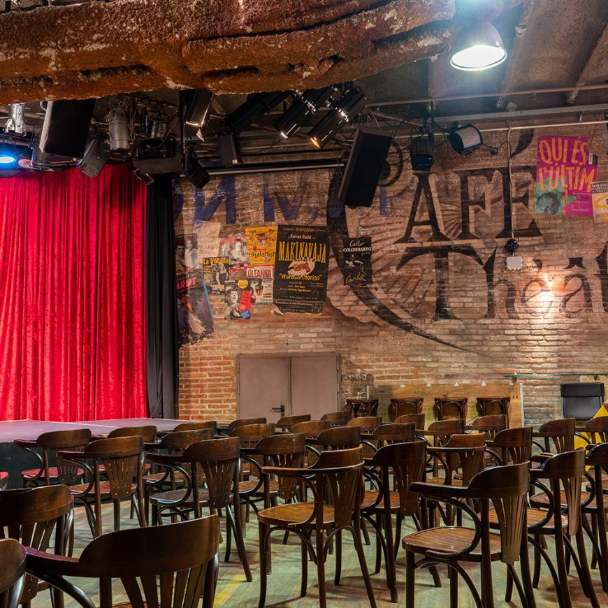 La primera vez que entras en la Sala Café Teatro tienes la sensación de estar en un sitio único. Se respira teatro y el paso de tantos y tantos artistas. La proximidad del escenario y una decoración muy cuidada hacen de la Sala Café Teatro un espacio muy especial. Con un escenario de media altura y un equipamiento técnico de primera línea, en la Sala Café Teatro se programa todo tipo de espectáculos: teatro, monólogos, magia, música y variedades. Dispone de acceso adaptado y servicios para personas con movilidad reducida y sistema de climatización durante todo el año.